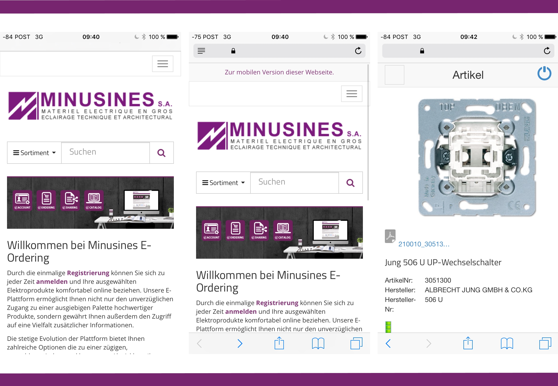 Visuellement, l’e-shop de Minusines a bien évolué: la mise en page du site a en effet été revue et est passée en responsive afin que son design s’adapte automatiquement à l’écran d’un téléphone. Cette fonctionnalité est d’ailleurs très appréciée par les clients qui peuvent à présent passer une commande en ligne, en direct depuis le chantier sur lequel ils se trouvent. A ce jour, on note que 8.000 fiches produits sont disponibles en allemand sur la plateforme ce qui correspond à 95% du matériel ayant été vendu en 2016 chez Minusines. Les 5% restants devraient être disponibles au plus tard en juillet.