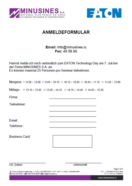 Anmeldeformular EATON