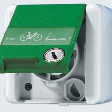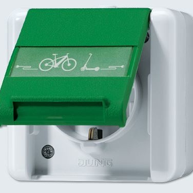 Notre partenaire de longue date JUNG a maintenant dans sa gamme une nouvelle prise de courant SCHUKO® avec le symbole de chargement de l’e-bike.