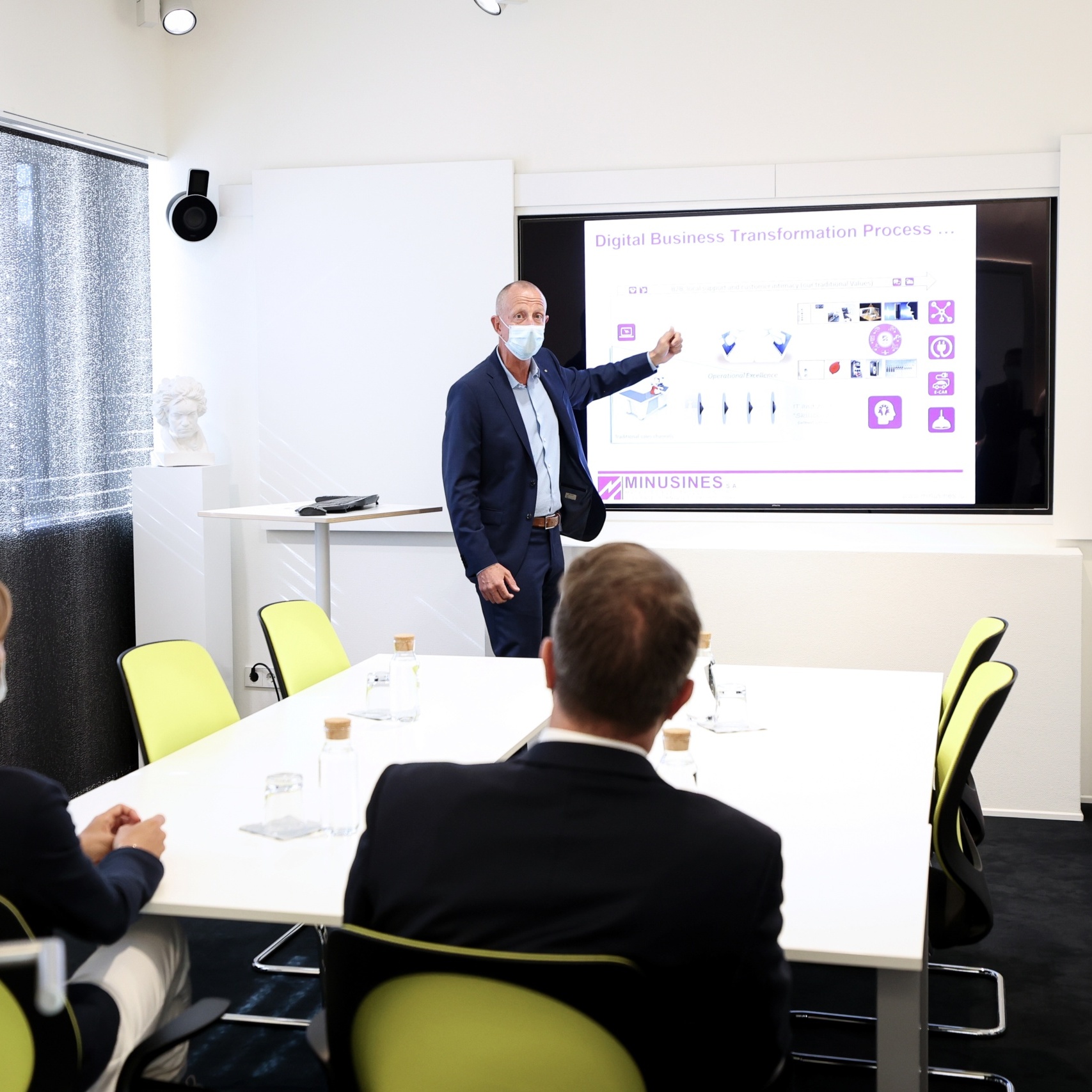 Afin de respecter les mesures sanitaires, la visite a été diffusée en temps réel en interne à tous les employés de l’entreprise. En fin de visite, Xavier Bettel s’est rendu dans la salle de conférence pour participer à une séance de questions/réponses virtuelle avec toute l’équipe.